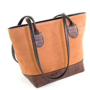 The Large Maple Bag – Tan Nubuck with Croc Print