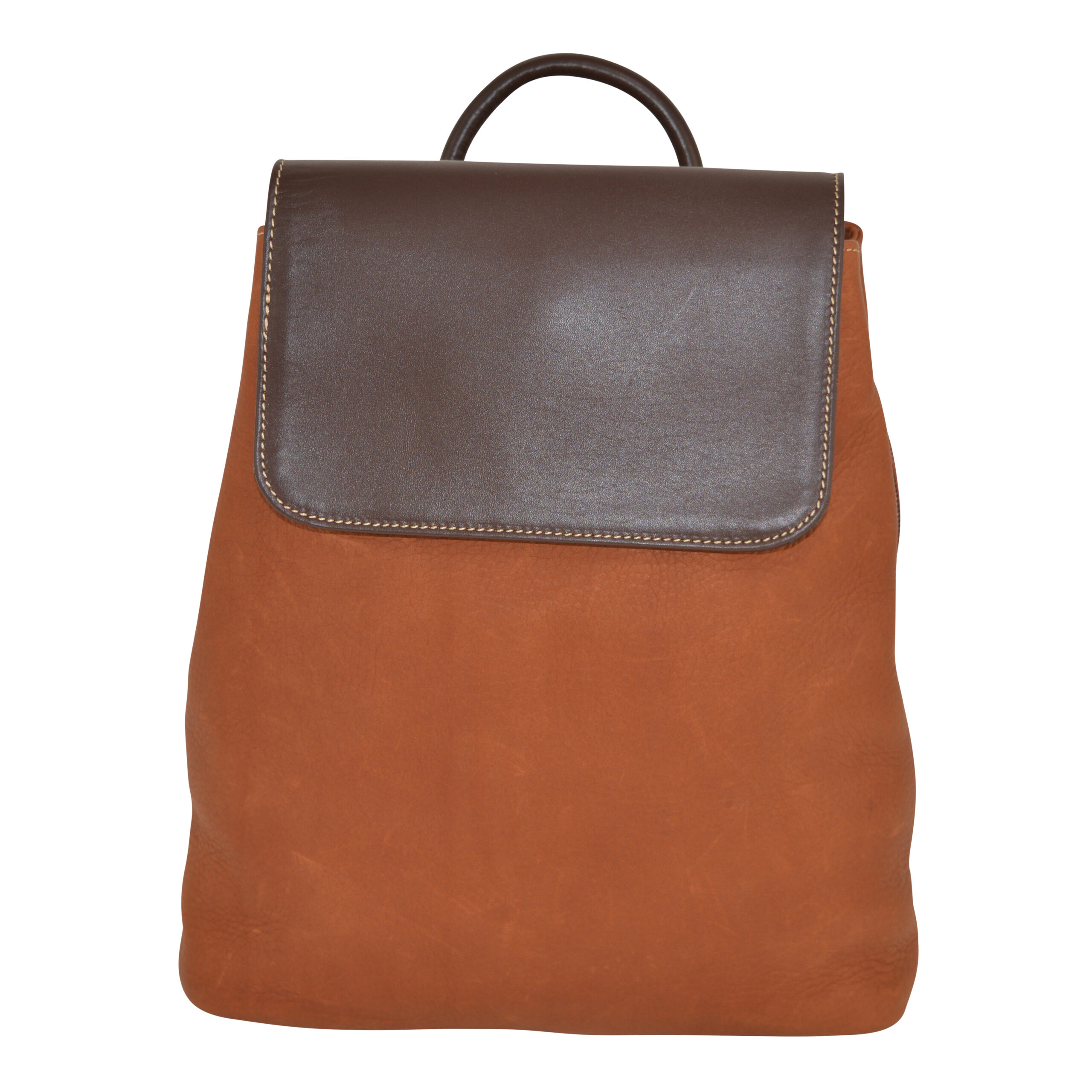 - A combination of a smooth calf-hide flap and cowhide for the body of the bag.