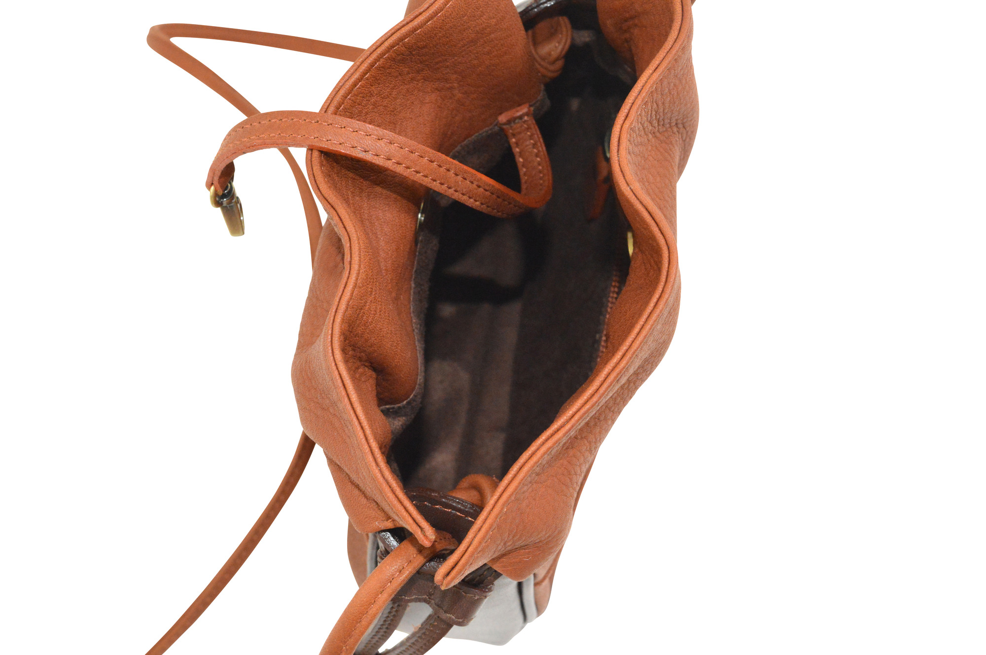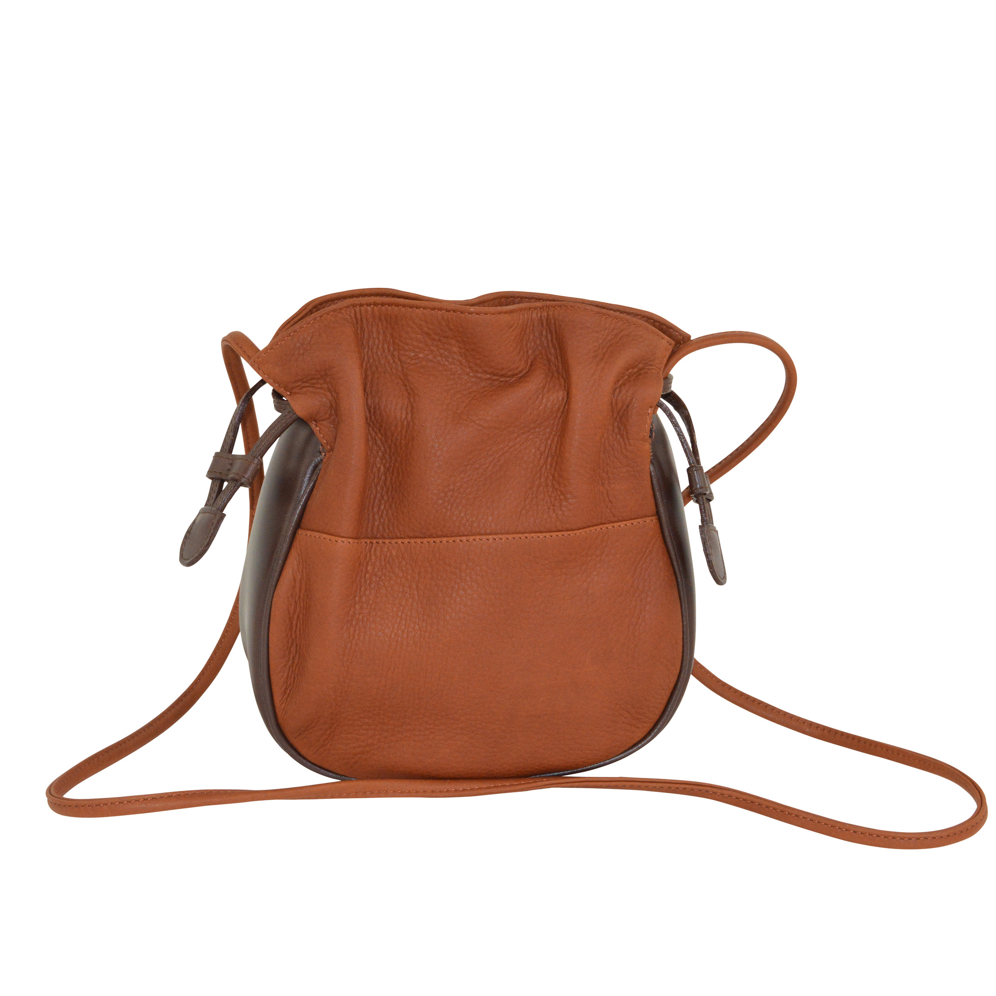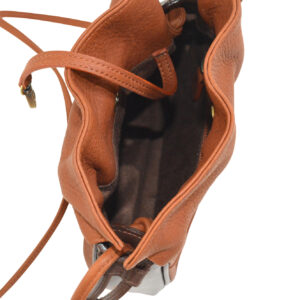 - Secured with a leather drawstring to keep the bag shut and locked with a leather tab.